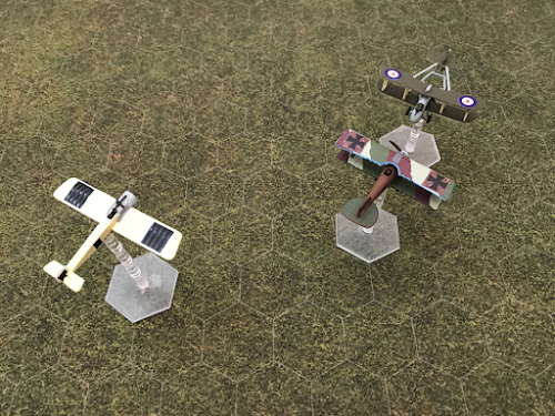 This is the third episode of a campaign representing fictitious battles in the air over the Western Front during the First World War. It was initially planned to use the Wings of Glory rules, but these were modified to use hex based movement in order to facilitate remote play over the Internet due to Corona restrictions.